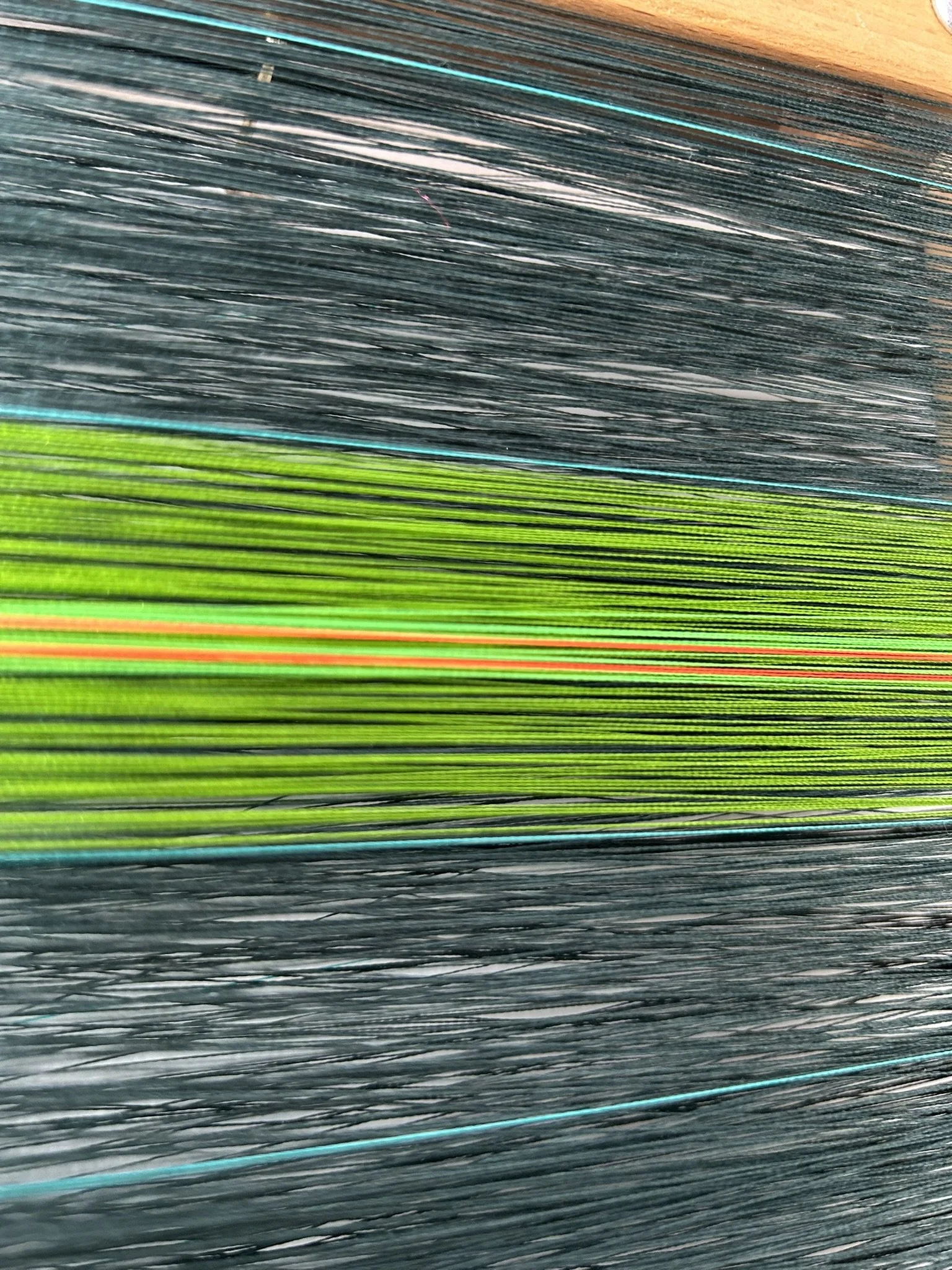 The wrapped pieces push the boundaries of threads to challenge the materials and notions of traditional abstract painting. Threads are wrapped around tapestry looms to create expanses of colour and form, stretching them to create aesthetic fields far the familiar linear and domestic form. I purposefully source second hand tapestry frames and reinvent them as pure artforms, each has its own unknown backstory.